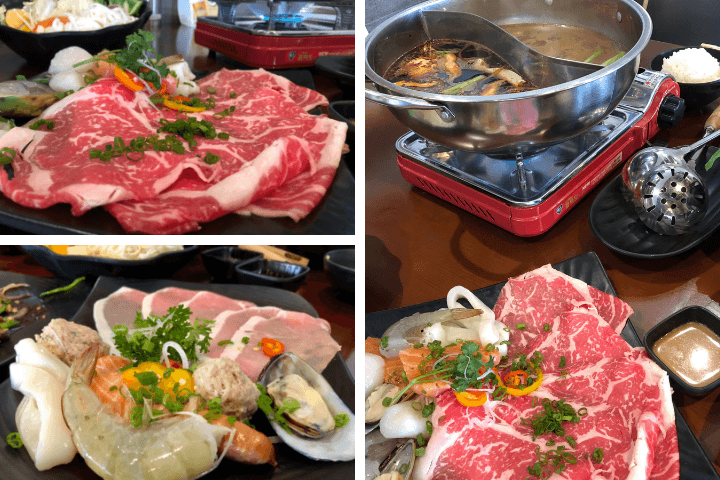 This fusion shabu shabu offers generous portions with a choice of 1-2 broths in one pot then a set of proteins, vegetables and noodles. The broths offered include vegetarian, seafood or spicy options and are extremely flavorful. The base complimentary broth is a sukiyaki soy with mirin, seaweed, dried ahi and sake. Other more intense broths including coconut curry and spicy crab are just a few dollars more. Share a pot, enjoy delicately prepped meats and beautiful fresh vegetables ready to cook and enjoy.