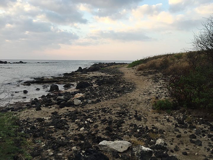 Next on my path is Kaloko Inlet, a waterway that requires passing over picturesque Wawamalu Bridge. The inlet reaches all the way to Kalaniana‘ole Highway, which at this point is parallel to my path. A network of side paths spread through the grasses and sands, but I’ve kept to the one along the shoreline. Pre-1800, this entire Kealakipapa Valley was once home to the farmers and fishermen of Wawamalu Village. The village’s name suggests shade, in reference to forests that once stood here. A ranch was established in the area in the 1920s by Alan Davis, with some locals still referring to Kaho‘ohaihai Inlet as Alan Davis Beach. A tsunami wiped out the ranch’s several houses, horses, and cows in 1946. Since then, groups like Sierra Club have lobbied to protect this magical stretch of shoreline from development, with its sunrises that are worth more than gold.