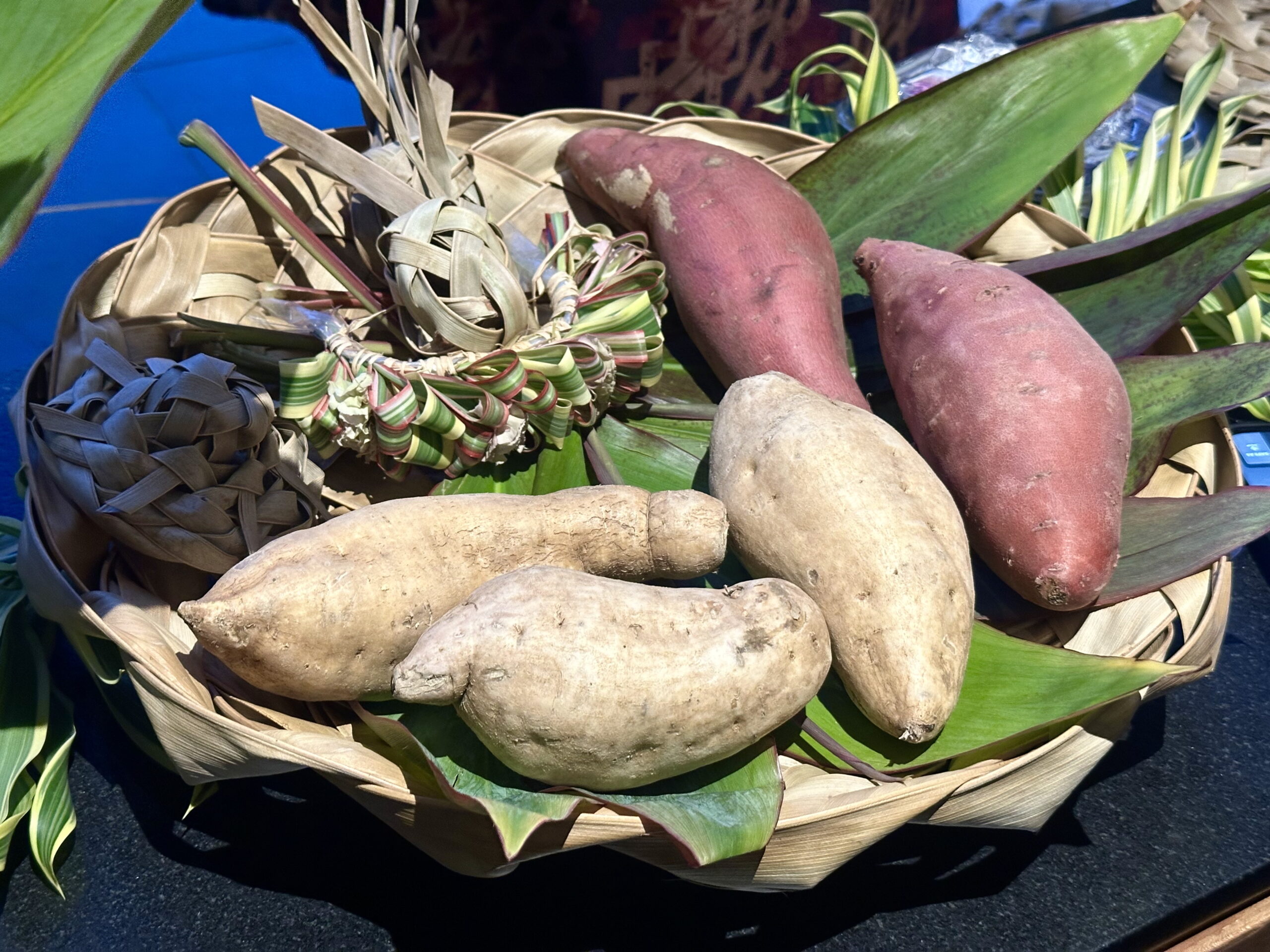 When we think about traditional Hawaiian food today, we are referring to “canoe crops” – staple foods that were brought to the Hawaiian Islands over 1000 years ago by canoe – which include ingredients such as kalo (taro), ʻulu (breadfruit), niu (coconut), maiʻa (banana), ʻuala (purple sweet potato) and ʻōlena (turmeric) just to name a few.