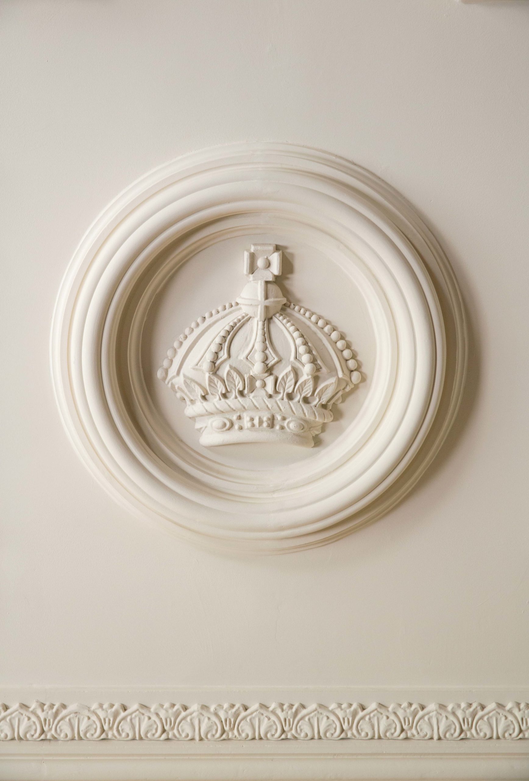 Another room concealed from public viewing is the queen’s private bath. The room, directly off the Queen’s Bedroom, boasts a bathtub with hot and cold running water and even a functioning showerhead. At the time of its crafting, water was drawn up through the ground beneath the palace from an artesian well and pumped into tanks stored in the attic. Presumably, the water heated up because the tanks were kept in the top-most room nearest the sun. With a peek around the bathroom door, one will find her sink. And a careful eye will notice that the basin is elaborately decorated with a Greek meander, twisting and turning in the traditional squared-off fashion so popular within Victorian design.