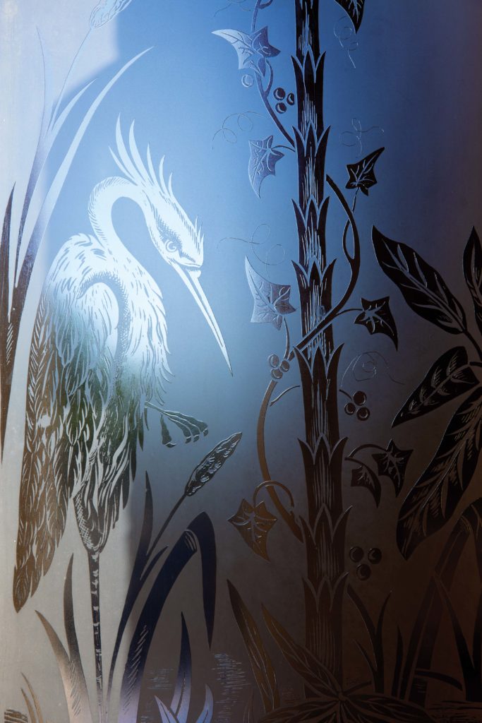 An original glass piece ordered in England, etched in San Francisco, and installed in time for King Kalakaua’s grand opening of the palace in 1882.